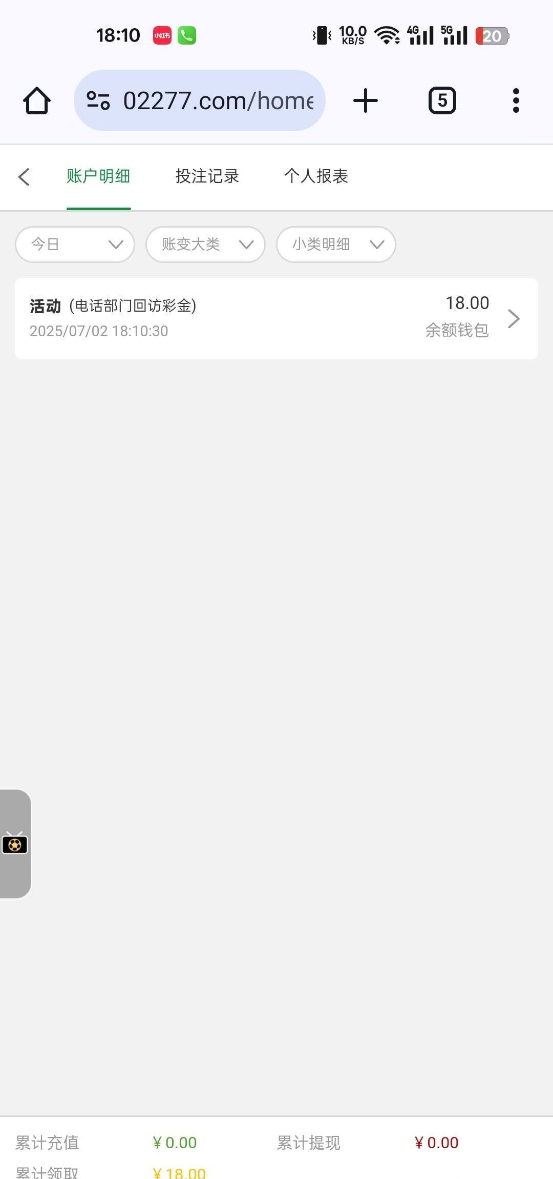 有玩过的上号看看刚刚收到18回访彩金