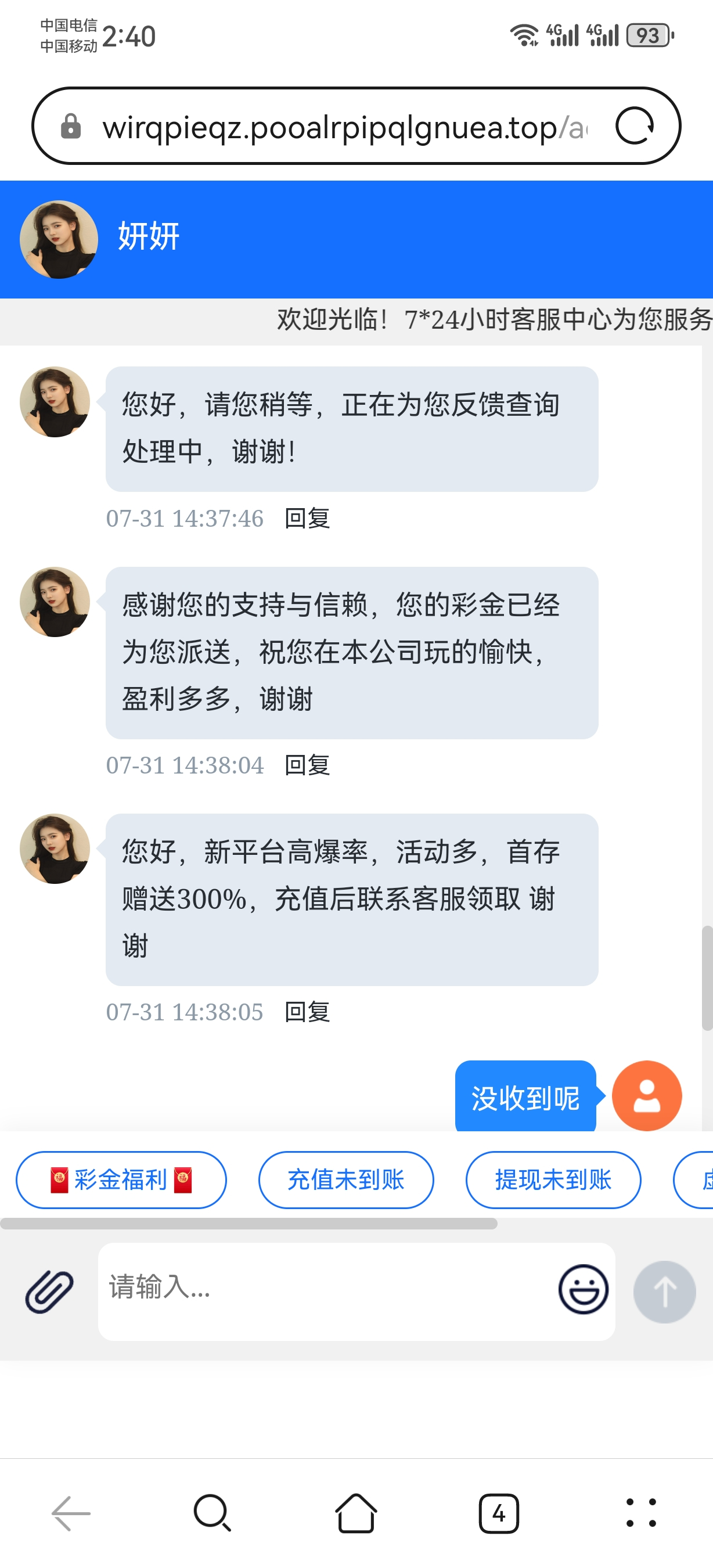 这个逼台老给我发信息,找客服就说让我注册,然后帮我查看优惠,我去他妈的,注册个毛。它们自己打电话发信息来的自己都不知道什么活动。