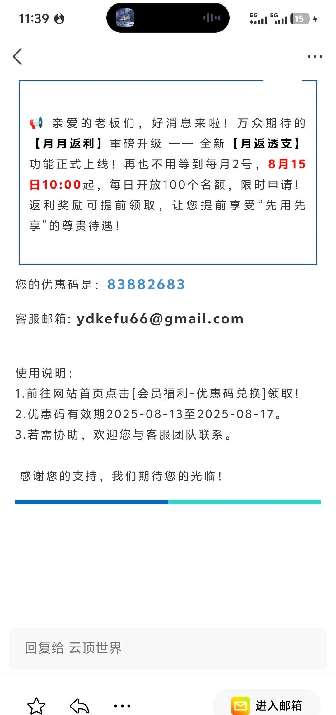 看看自己邮箱有没有优惠码,我领到了28