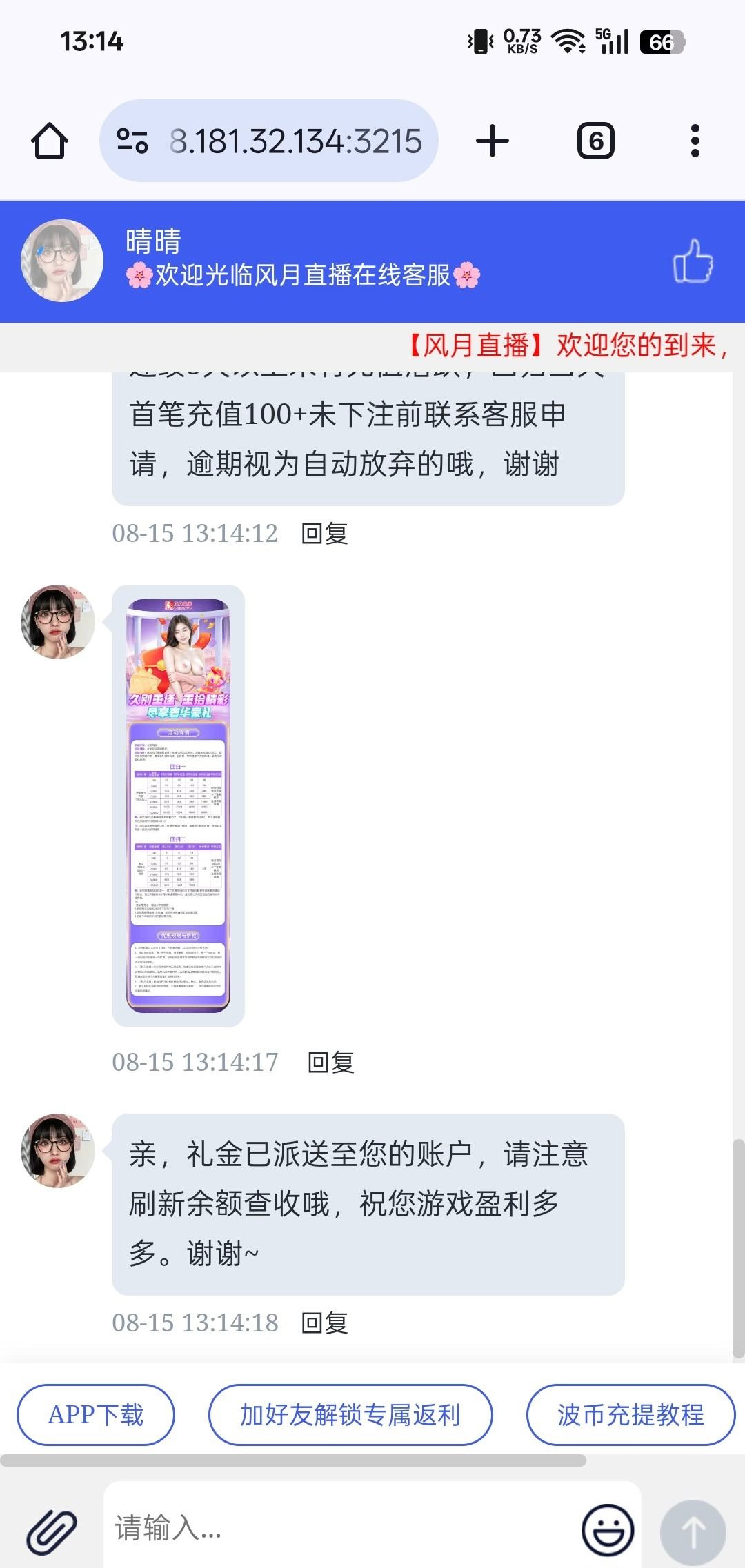 老用户又送回馈彩金了,联系客服碰瓷我送了8,