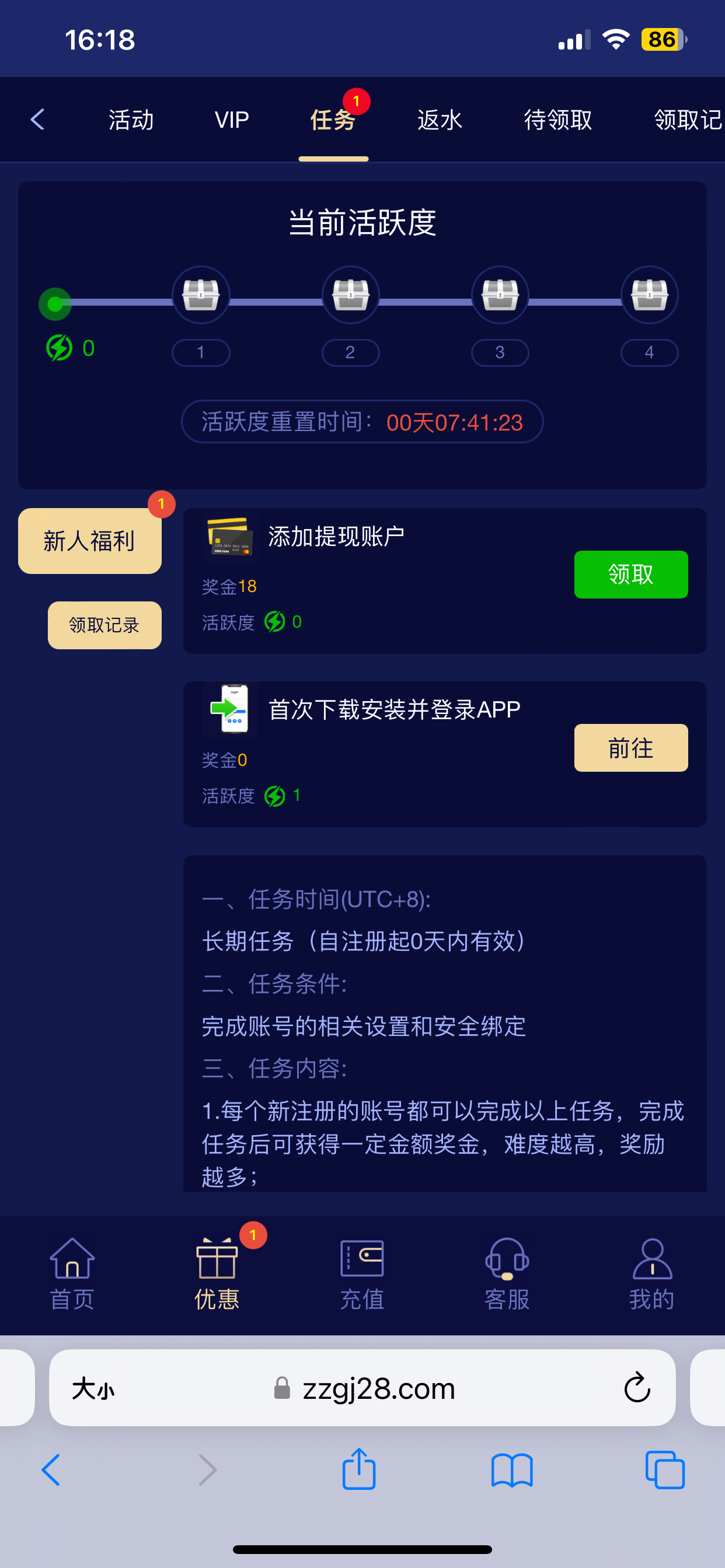 注册绑定银行卡就能领取18 禁止充值啊我没打出来看着挺傻逼的台