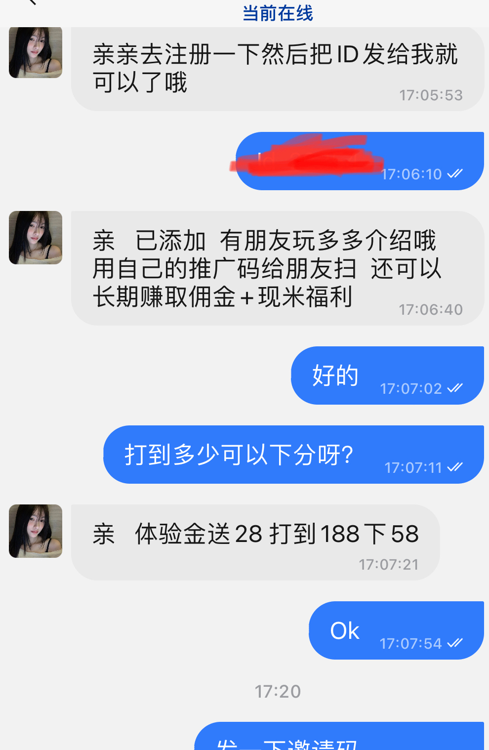 微信扫码注册,用微信登录。添加旺旺客服147741881   报uid等就行  体验金送28 打到188下58   我梭哈没打出来   速度去,晚了容易黄