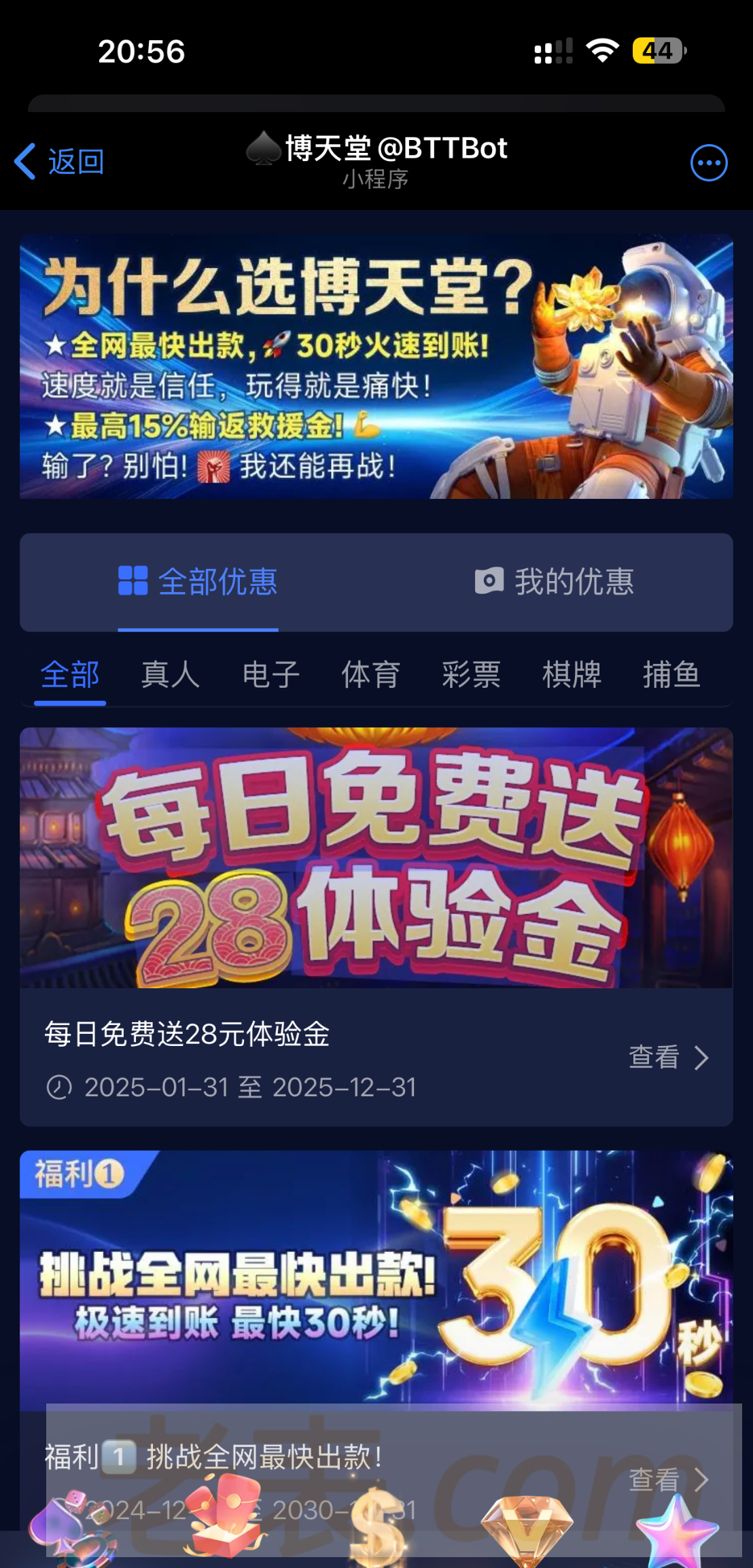 添加博天堂机器人飞机加@BTTBot 注册好之后点优惠直接点参加就可以了