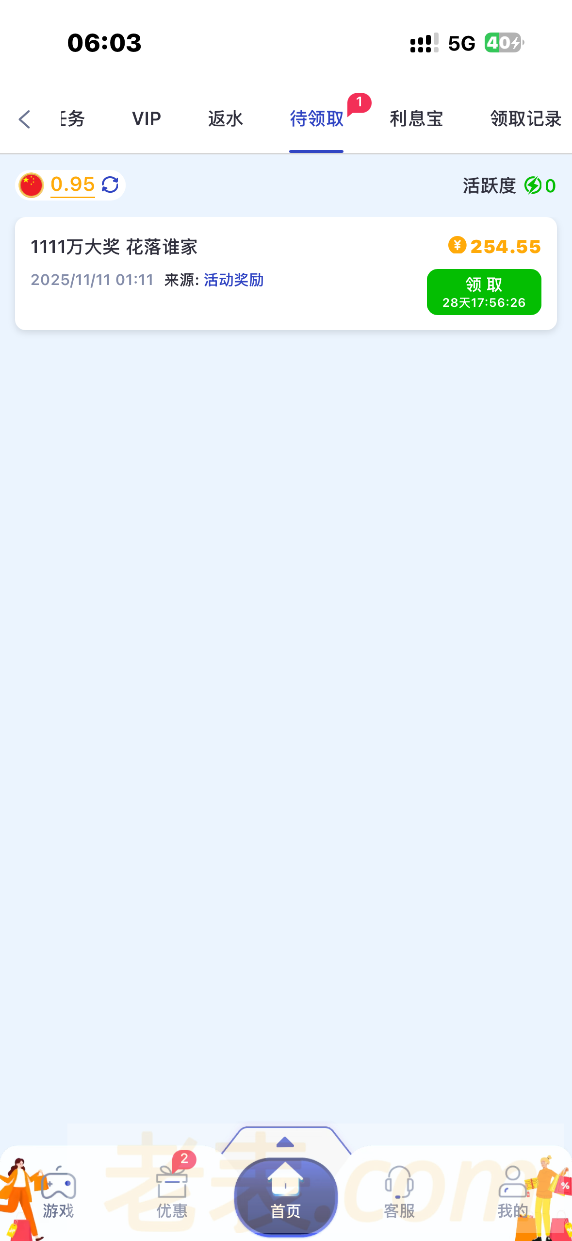 有号的可以去看看  免费领 我领了256 随机送的
