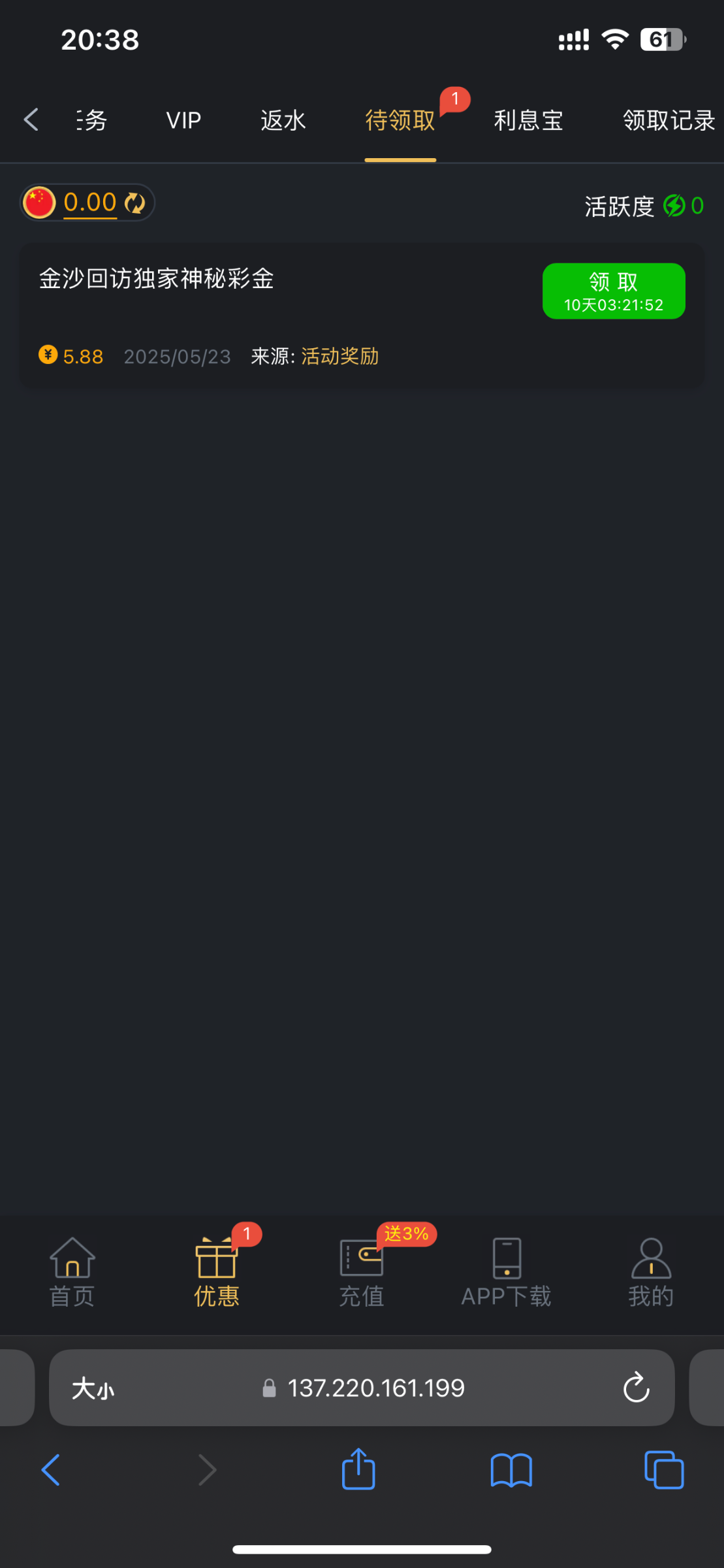打电话来的没充值过,直接登录就在待领取里了,地址9018.com 有号漏接的也可登录看看,白嫖即可