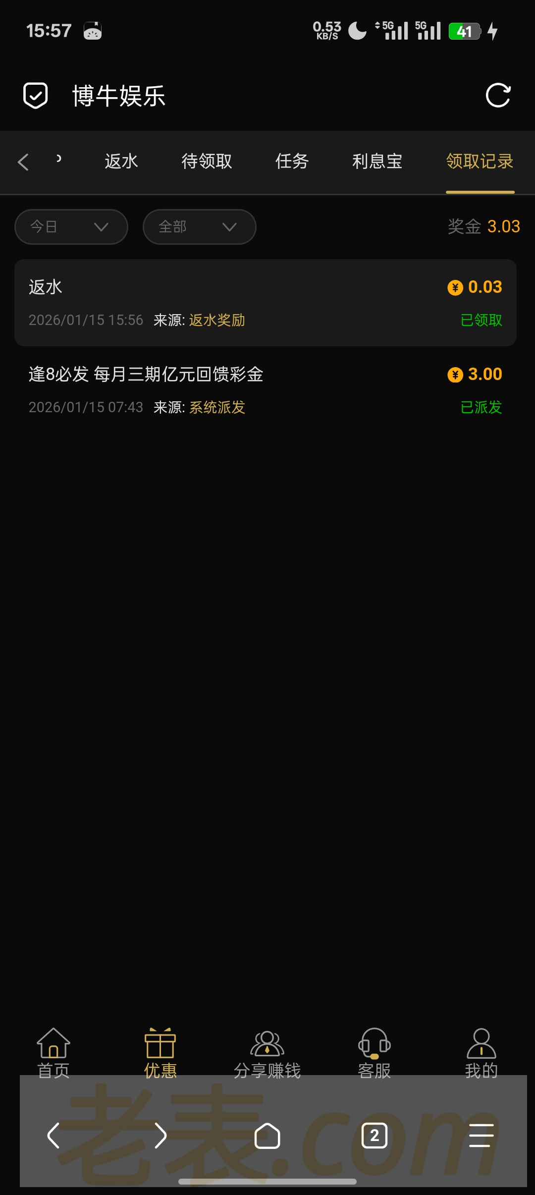 博牛娱乐之前冲过的去看看,有没有回馈,我领了3块